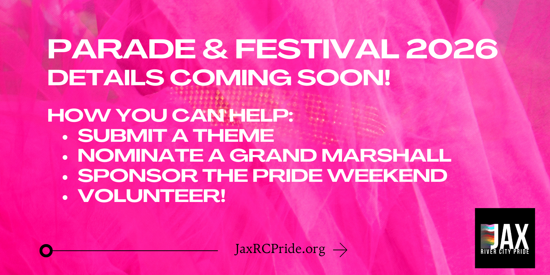 Jax River City Pride is a 501(c)(3) all-volunteer nonprofit organization dedicated to fostering a thriving, inclusive, and equitable community for LGBTQ+ individuals and allies in Jacksonville and beyond. Through celebration, education, advocacy, and outreach, we empower individuals of all sexual orientations, gender identities, and backgrounds to live authentically. Our annual Jacksonville Pride events and year-round initiatives uplift voices, honor history, and inspire meaningful change, ensuring that Jacksonville is a place where everyone can take pride in who they are.